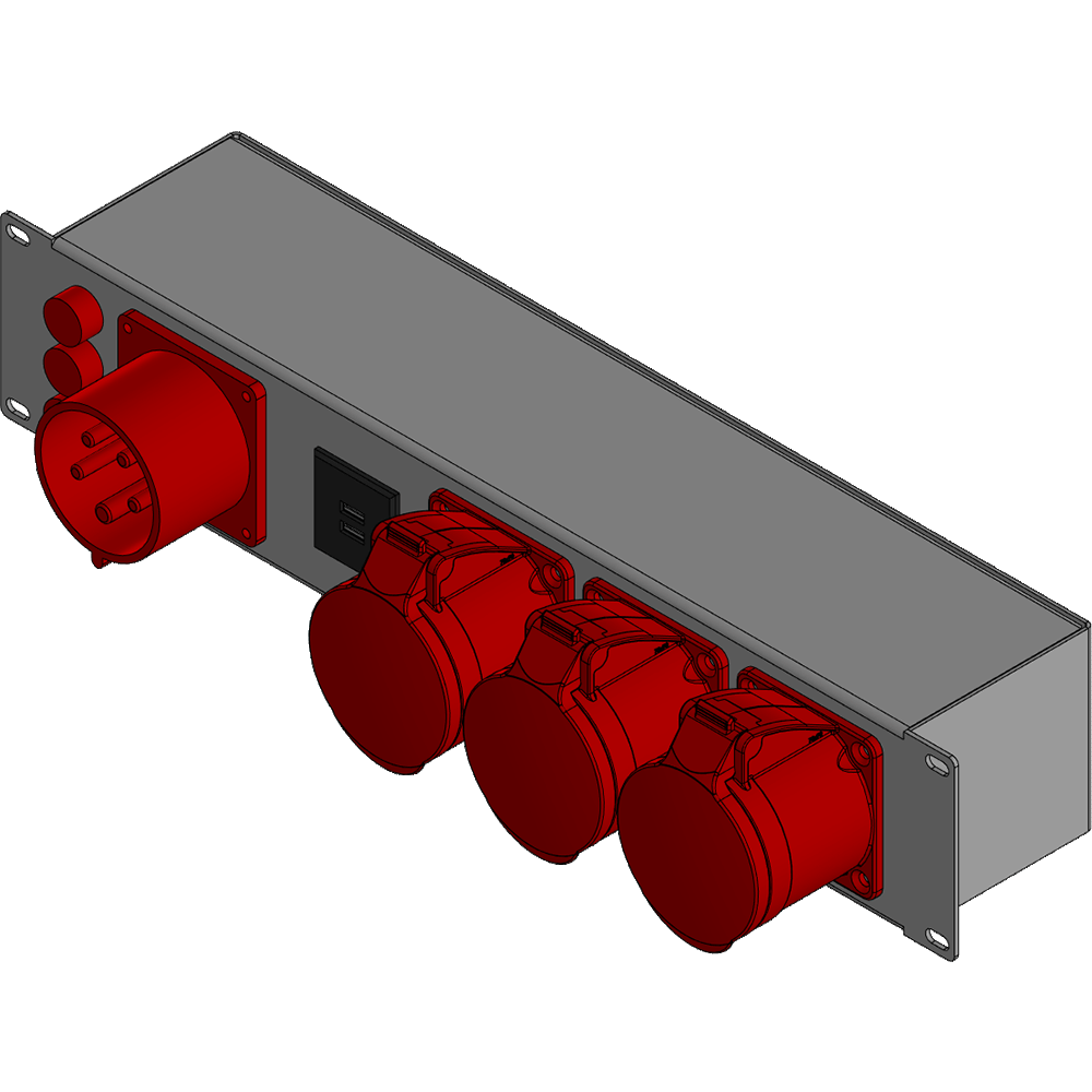 BELBOX BB-3224-2MR, устройство распределительное 19", вход CEE-380В/32А, выход 3хCEE-380В/16A, три индикатора включения фаз, USB-порты