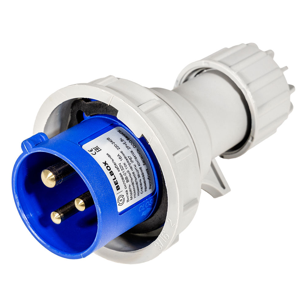 BELBOX BB-0132N, вилка силовая кабельная, 16А, 220В, 3P, 2P+E, IP67, синяя