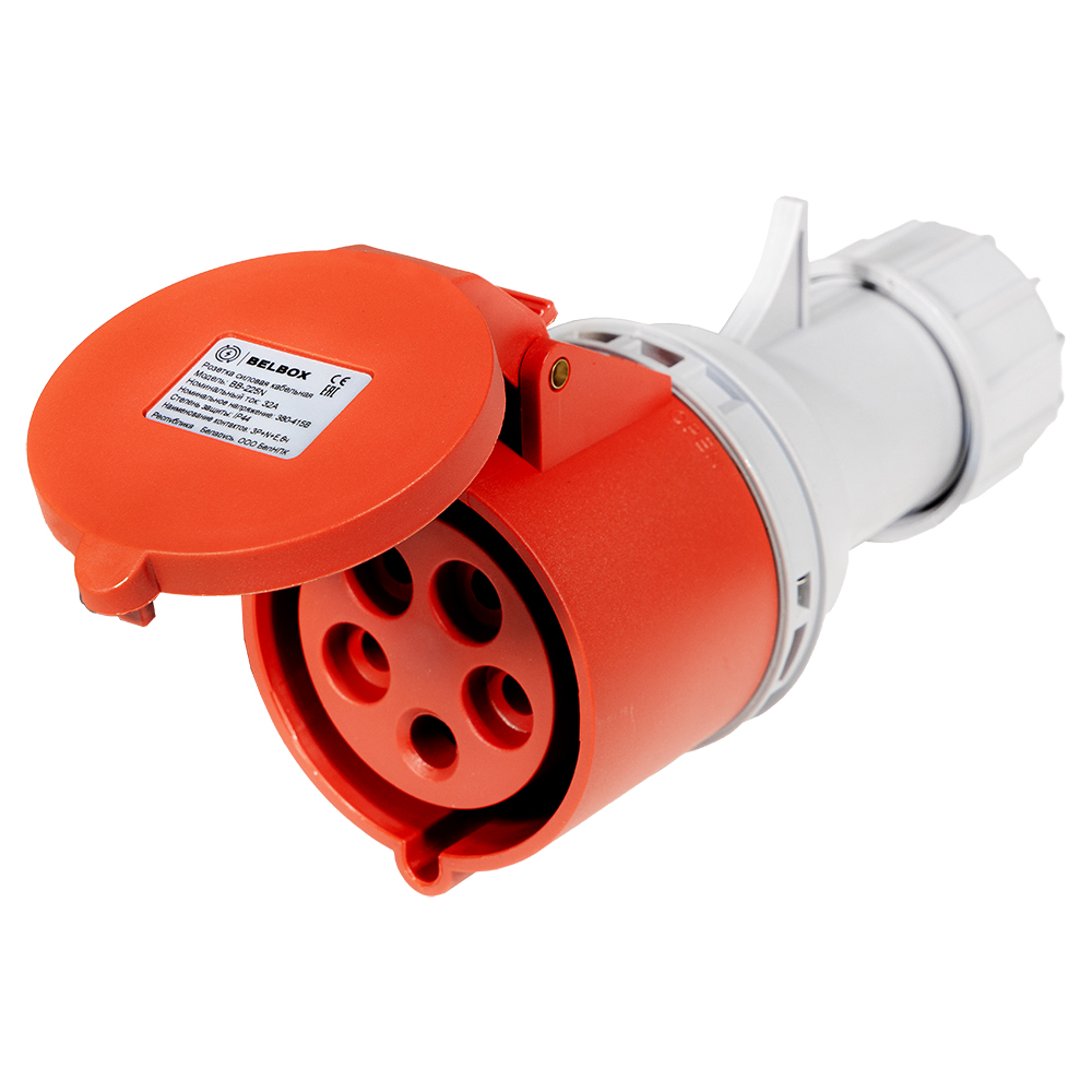 BELBOX BB-225N, розетка силовая кабельная, 32А, 380В, 5P, 3P+N+E, IP44, красная