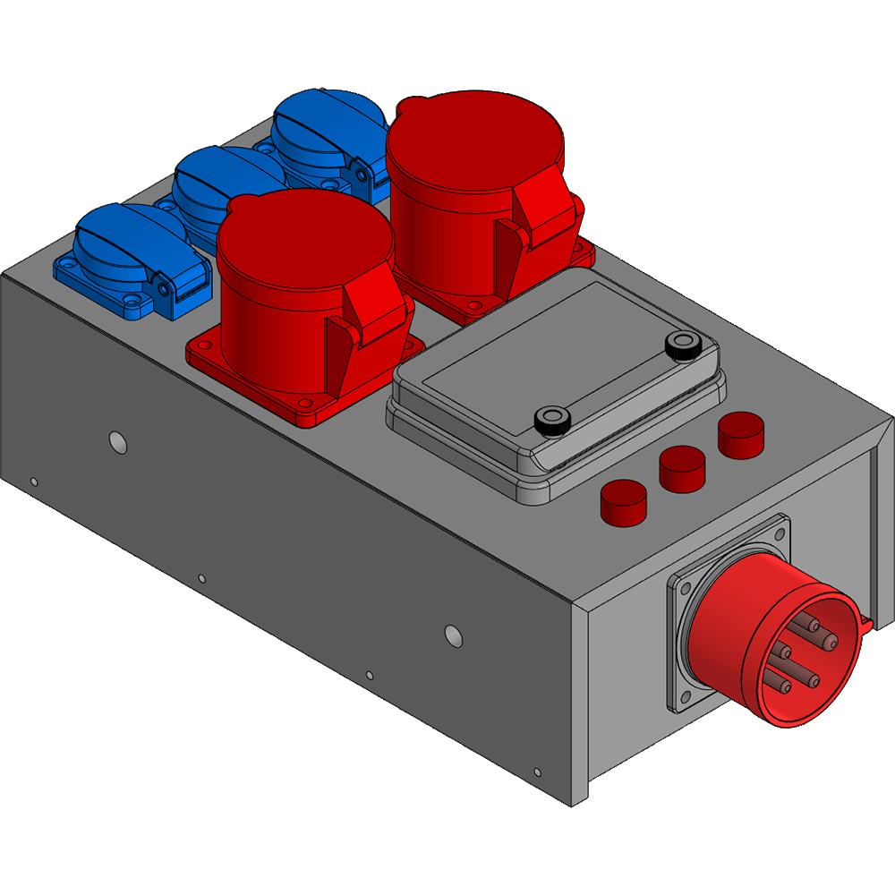 2 розетки СЕЕ (16А, 380В, 5Р) + 6 розеток SCHUKO (16А, 220В, 3P)