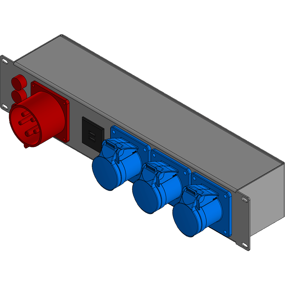 BELBOX BB-1624-2MR, устройство распределительное 19", вход CEE-380В/16А, выход 3хCEE-220В/16A + USB-порты, индикаторы